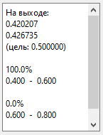 всех членов выходного вектора (здесь – двух) в заданный интервал (0.000, 1.000).