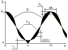 а затем при дальнейшем смещении в интервале x = a...2a, снова возрастают